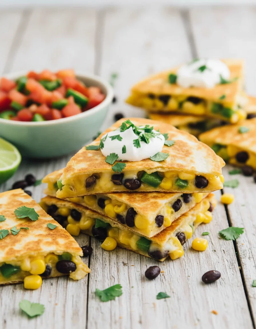 These easy black bean and corn quesadillas are ready in just 15 minutes, making them ideal for a quick weeknight dinner! Featuring melty vegan cheese, hearty black beans, and sweet corn, they are both satisfying and delicious. Customizable with your favorite veggies, beans, and spices, these flavorful quesadillas prove that vegan meals can be incredibly tasty and convenient.