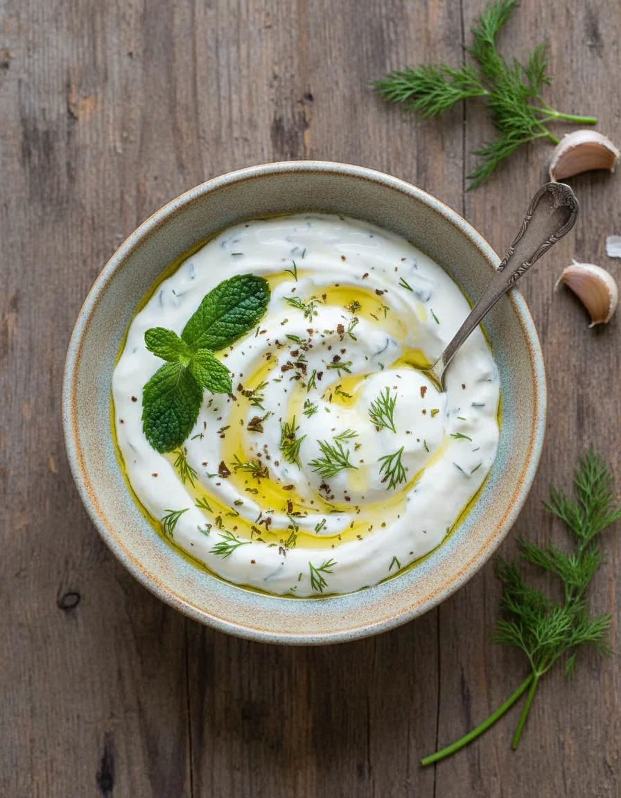 This vegan Greek yogurt sauce is a staple that takes minutes to make and tastes great with everything! Think of it like a lazy tzatziki, perfect as a dip or drizzled over various dishes. It's creamy, fresh, and tangy, elevating any meal with its classic Mediterranean flavors. Homemade is always better, avoiding unnecessary sugars, oils, and preservatives found in store-bought options. Adjust the consistency by slowly adding water to suit your preference, whether you like it thicker for dipping or thinner for drizzling.