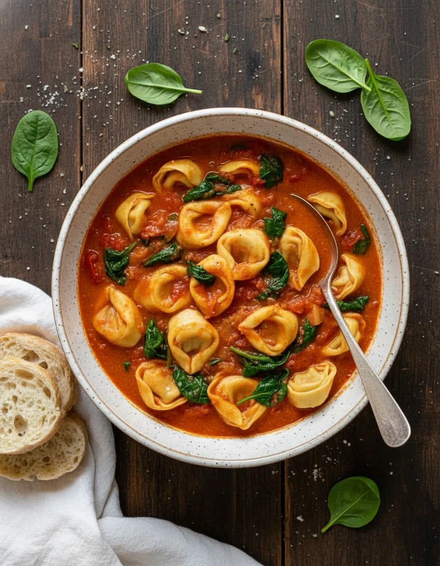 This comforting vegan tomato tortellini soup is a hearty, satisfying meal perfect for any night. Enjoy a rich, creamy tomato broth loaded with tender tortellini and fresh spinach, offering a delightful twist on a classic comfort food.