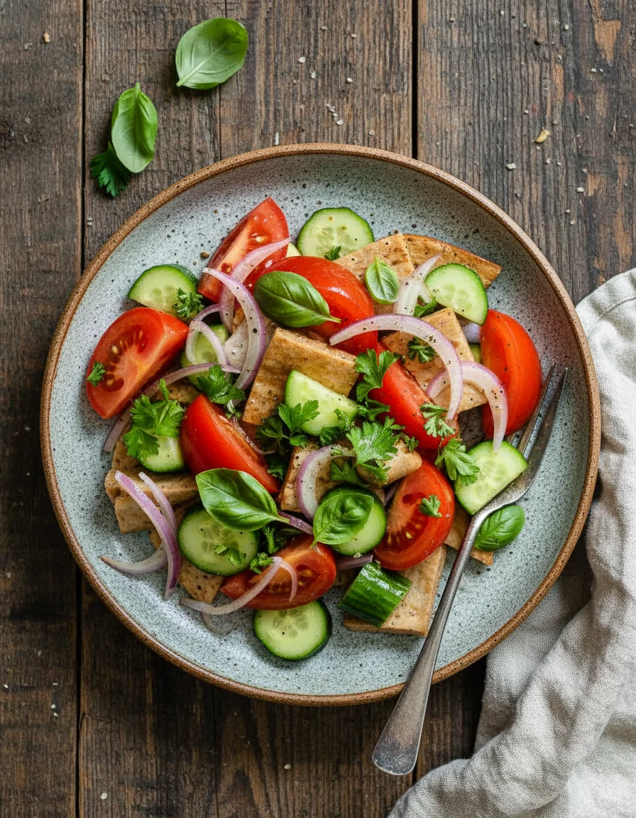 #easy#pita#salad#simple#summer#tomato#italian#parsley#shallot#cucumber#side dish#panzanella#gluten-free#vegan salad#quick recipes