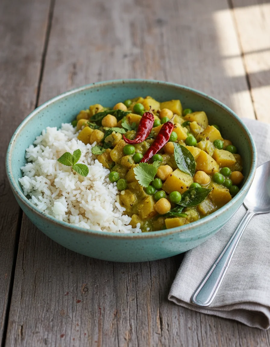 This nourishing green curry comes together quickly and is packed with flavorful spices. It's also a versatile recipe, welcoming any vegetables you have in your fridge that need using up. Enjoy!