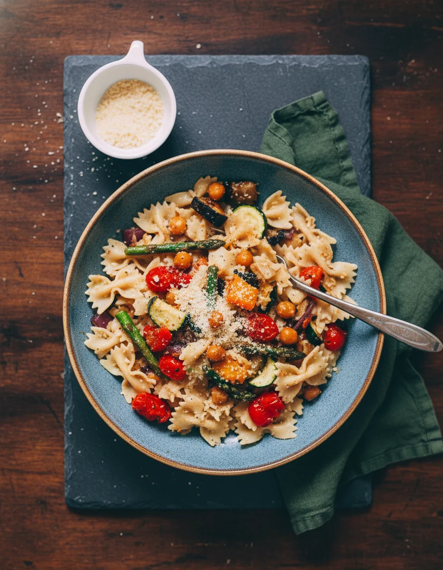 This easy Vegan Pasta Primavera combines comforting pasta with versatile vegetables and protein-rich chickpeas. It's simple, savory, optionally gluten-free, and a flavorful way to use up fresh produce. Ready with just 10 ingredients, this dish is a balanced and satisfying meal perfect for any night.