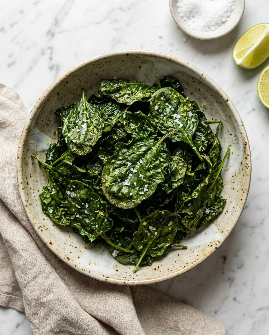 These crispy homemade spinach chips offer an addictive salty-citrusy flavor. They are gluten-free, vegan, grain-free, and paleo, making them a healthy and satisfying snack alternative.