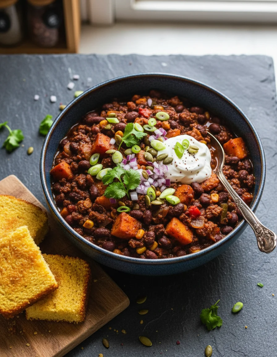 This hearty slow cooker chili features sweet potatoes and black beans, creating a satisfying and flavorful meal perfect for cold weather. It balances sweetness with smoky spices and is designed for easy preparation with minimal fuss. Enjoy it with a variety of delicious toppings for an ultimate comfort dish that's also freezer-friendly.