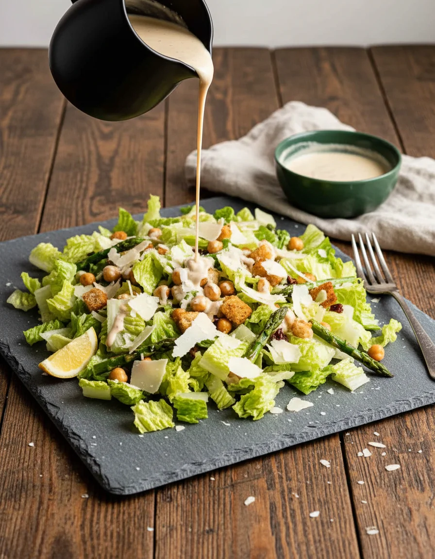 This light yet flavorful vegan Caesar salad features crisp romaine lettuce, crunchy homemade croutons, savory coconut bacon bits, and a tangy, creamy vegan Caesar dressing. It's a quick and easy dish, perfect as a crowd-pleasing dinner side or a light lunch.