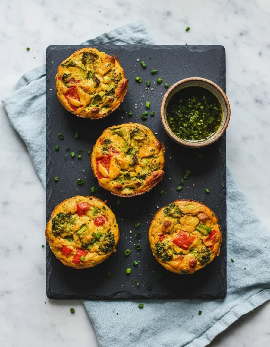 Start your day with these protein-packed vegan egg muffins, loaded with vegetables! This easy, make-ahead breakfast option features wholesome ingredients and is naturally gluten-free. They have a delicious 'egg-like' texture and flavor, perfect for a quick, grab-and-go meal or meal prepping.