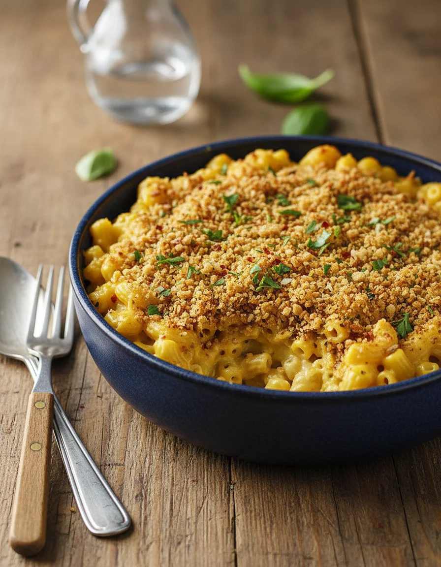This delicious vegan mac and cheese recipe shows you how to make a baked mac and cheese that's fully plant-based. It's a flavorful, easy vegan recipe, topped with a crisp herby topping, offering true comfort food.