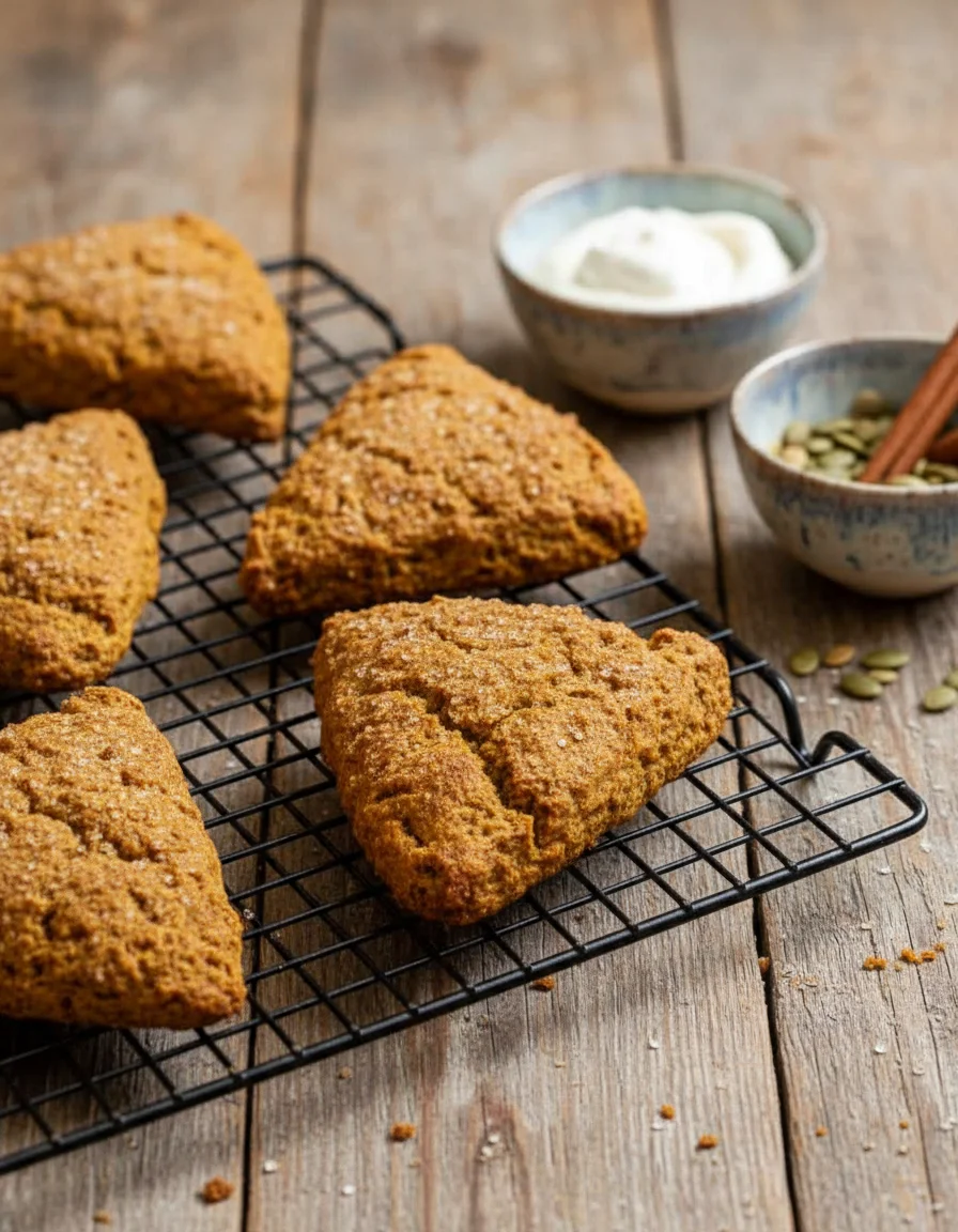 These tender and flaky vegan pumpkin scones are bursting with cozy fall flavors. With crisp edges, they are perfect for crisp mornings and Thanksgiving brunch, offering a delightful plant-based treat.