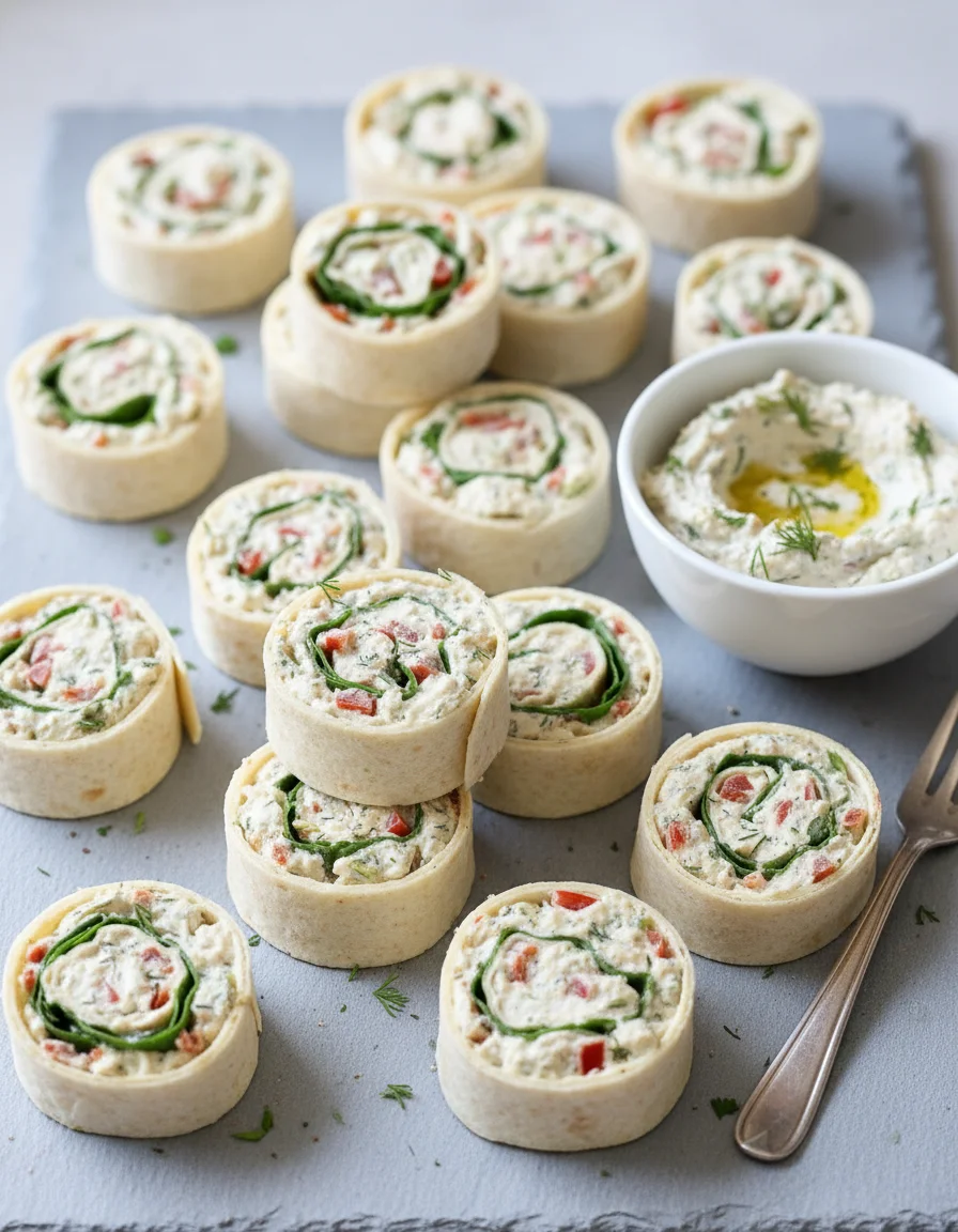These vibrant vegan tortilla roll ups feature a creamy, herbed tofu filling mixed with colorful vegetables and sun-dried tomatoes. Rolled tightly in tortillas and chilled, they make easy, no-bake pinwheels perfect for snacking or entertaining. This recipe is nut-free and can be made gluten-free and soy-free.